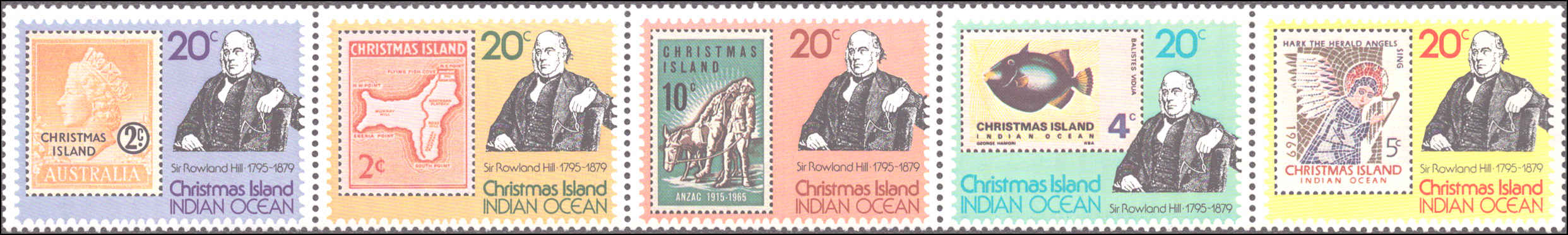Christmas Island #90, Complete Set, Strip of 5