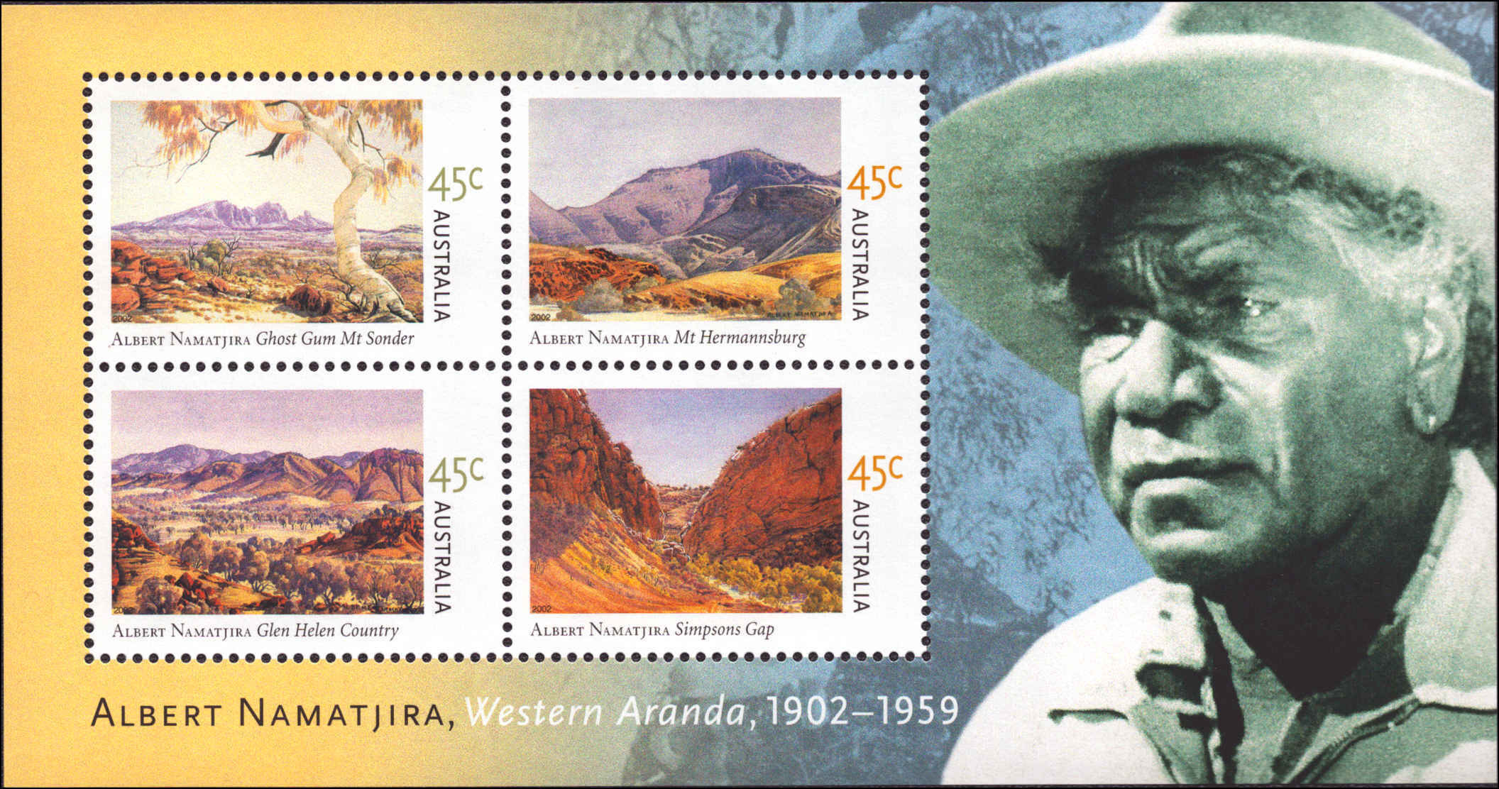 Australia #2067a, 2067b, Complete Set(2), Blk of 4 + S/S Year: 2002 Topic: Art, Landscapes Condition: Never Hinged Our Price: $6.80